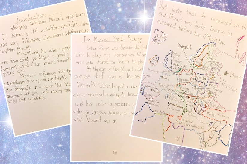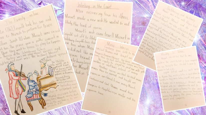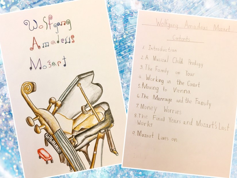 這是孩子最近的 big project – 音樂家莫扎特的傳記 🎼。