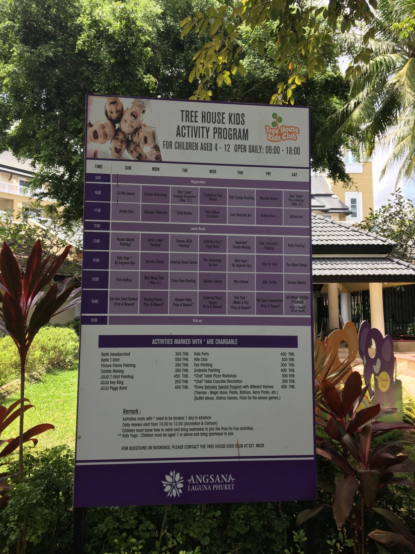 大部分酒店均設有 Kids Club,非常照顧有小朋友的家庭。而我們到訪的 Angsana Laguna Kids Club 每天 9am 開放,每小時均有不同的兒童活動,包括 face painting, outdoor games, scout explorer (小童軍遊湖繪畫),kite making 等等,有動有靜,而且大部分活動都不另外收費。