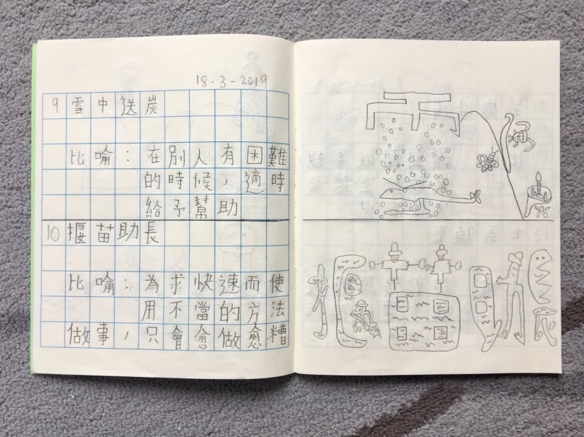 家學成語,我鼓勵孩子把成語故事繪畫出來。