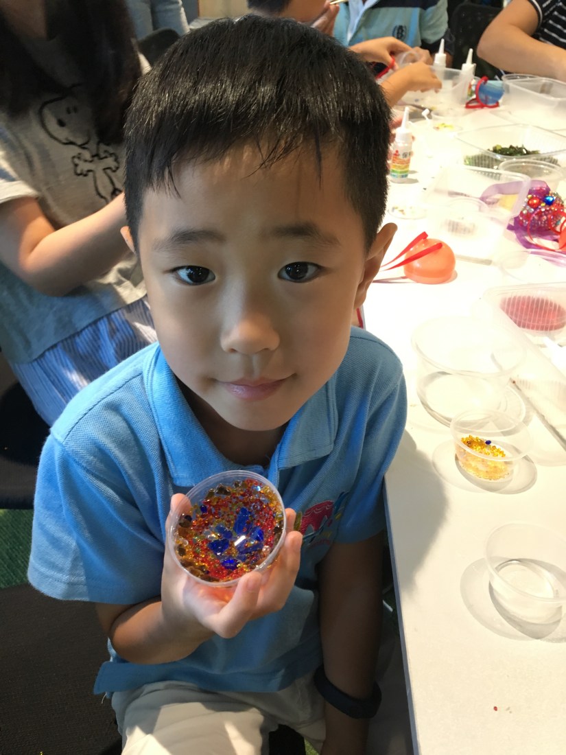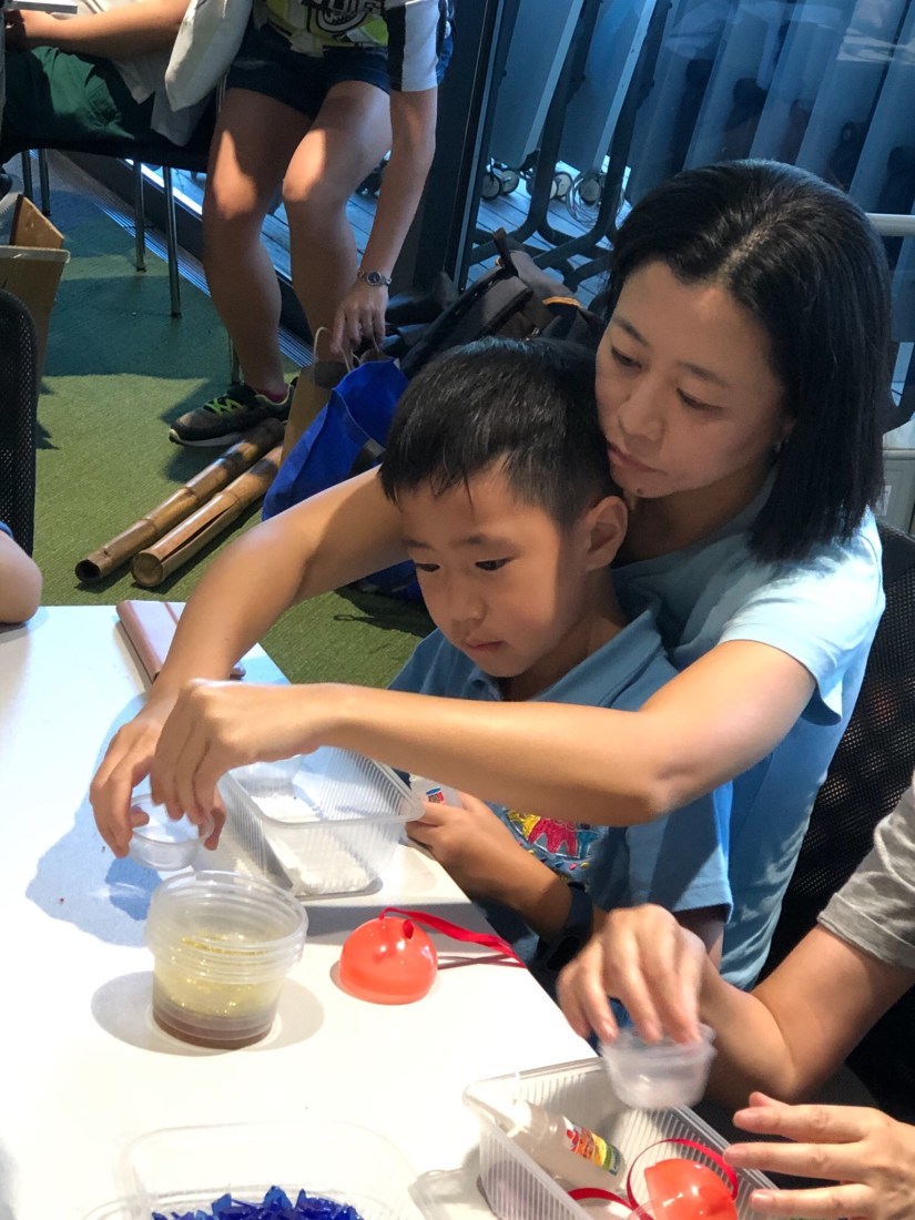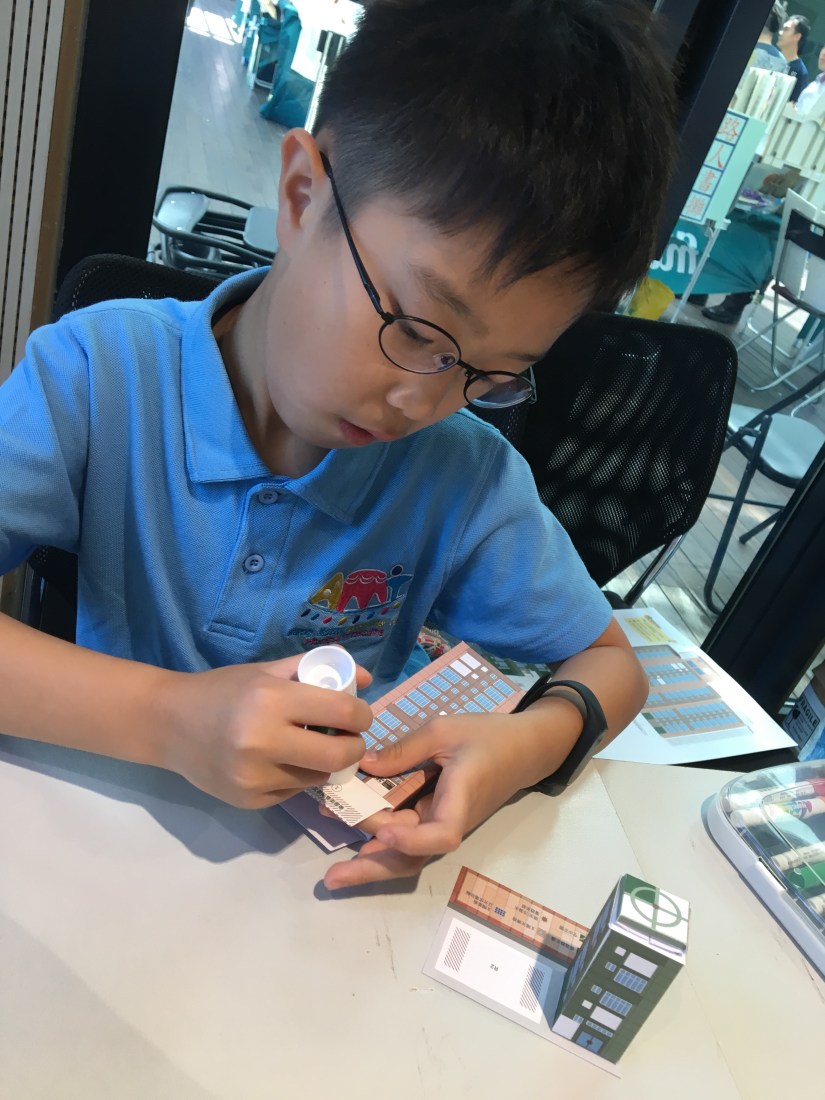 當天,哥哥參加了「綠建紙模型工作坊」,了解綠色建築如何紓緩氣候變化。弟弟則參加了「環保玻璃燈球吊飾工作坊」,自己動手用玻璃裝飾環保吊燈。孩子們拿著自己的作品,愛不釋手,興奮不已!
