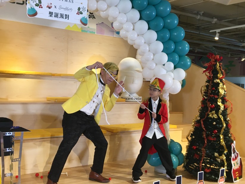 接著,由 #香蕉哥哥魔術表演,哥哥Ethan 上台一嘗當小助手的滋味!弟弟 Jayden 去了找彩繪師,在手上畫了一串聖誕裝飾☺️。