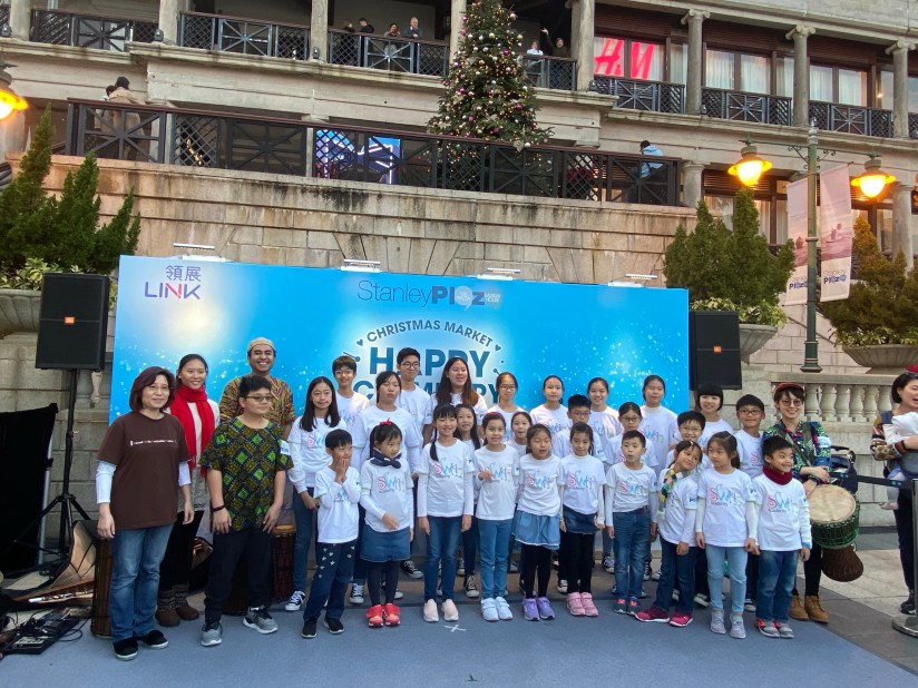 聖誕市集一連三個週末在 Stanley Plaza 赤柱廣場 舉行。期間,大會更在「美利樓」安排了不同的表演項目供大家欣賞。昨天下午,就是SWAN Academy 的聖誕音樂表演,有聖誕曲目,也有非洲音樂,可幸孩子們也是表現成員之一。