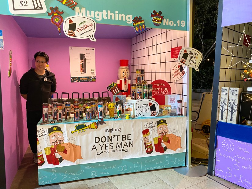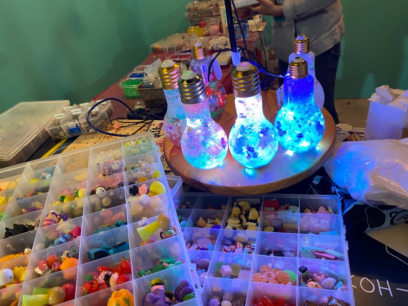 市集的佈置很漂亮,聖誕氣氛濃厚!市集內擺放了各式各樣的攤檔,有售賣食物的(包括海鮮、豬手、啤酒、cupcakes、甜品等等),也有售賣聖誕飾物和日用品的,都非常精緻!其中,更有攤檔供大家親自製造聖誕飾物(需付費),把裝飾物放進燈泡💡,然後著燈,閃閃發光啊!另外,還有免費工作坊可供大家登記和參與。