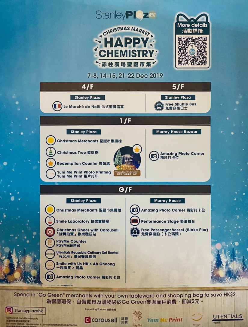整個聖誕市集位於赤柱廣場地下及一樓。場內指示清晰,還有地圖、時間表等供大家參考(詳見附圖)。