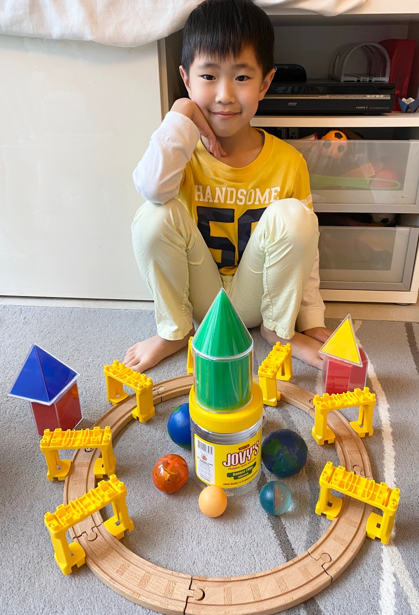 然後,我讓孩子發揮創意,組合家中的玩具,設計出他們喜歡的組合。