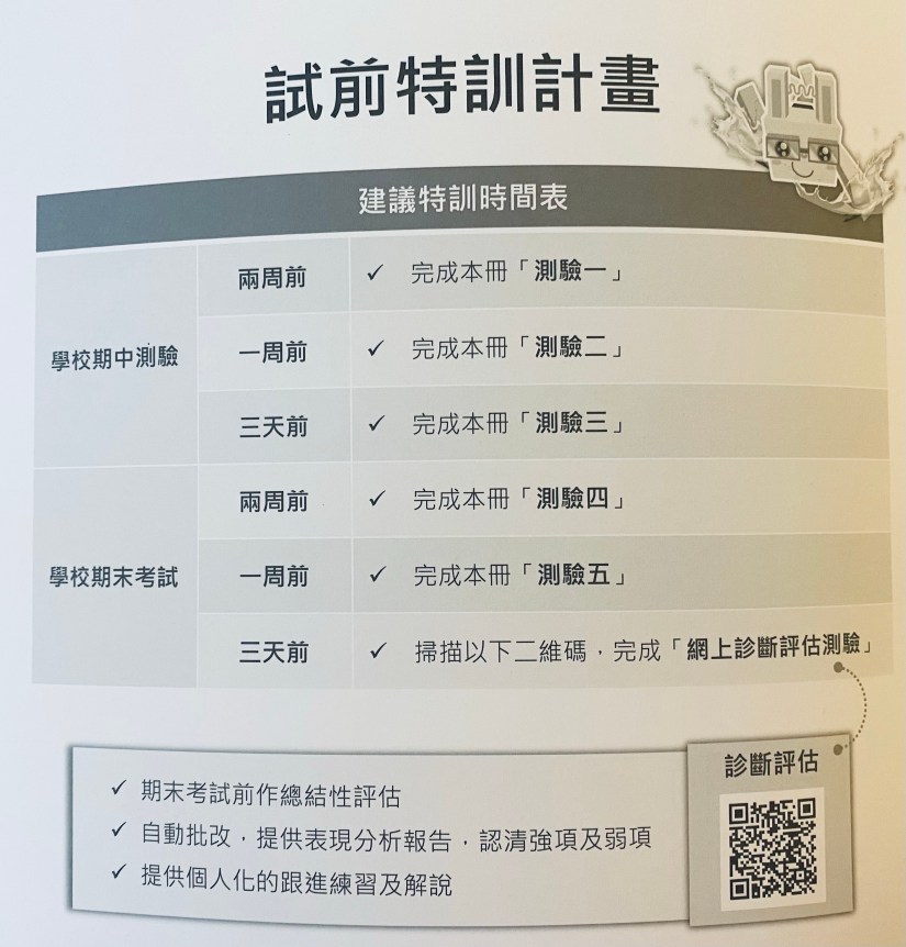 最近購入《培生朗文試前升級特訓》測驗卷系列,有別於坊間練習之處,在於部分題目有QR Code,解說影片一掃便有。而透過網上診斷,就可以獨立評估學生出的表現,製作一份專屬分析報告,學生便能針對弱項作出改善,讓他們學習路上向前邁進!