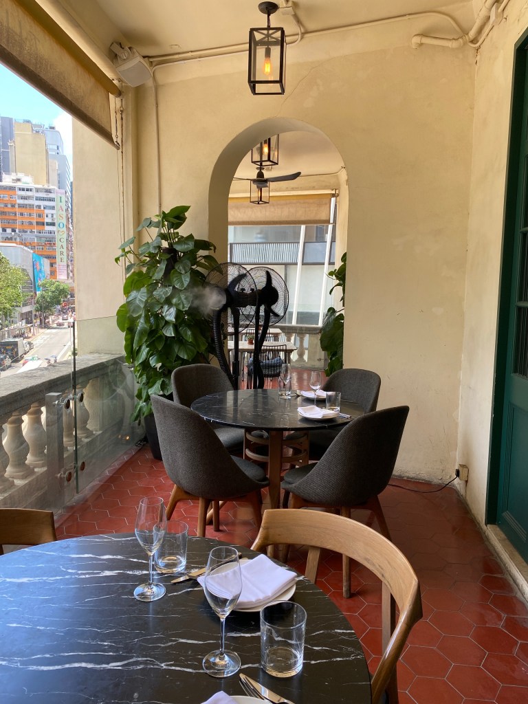 這次到訪,我們吃飯的位置連接陽臺及長廊,通往陽臺處裝有法式大窗。從陽臺看出去就是有電車行走的莊士敦道了。
