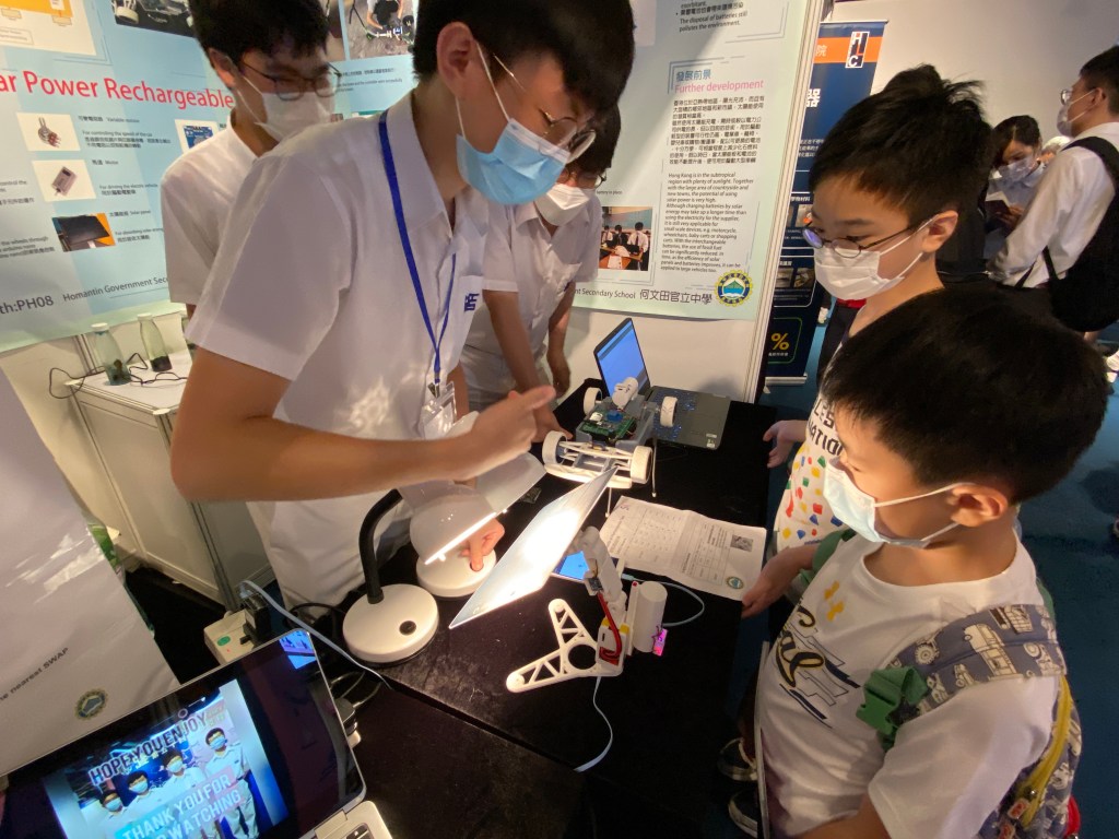 今天,我帶孩子來到聯校科展參觀。現場由二十多間中學設置攤位,由中學生介紹自家創作的科學產品。現場還設有供小朋友參與的科學實驗和科學遊戲,是一個極具教育意義的親子活動,我們極力推介。