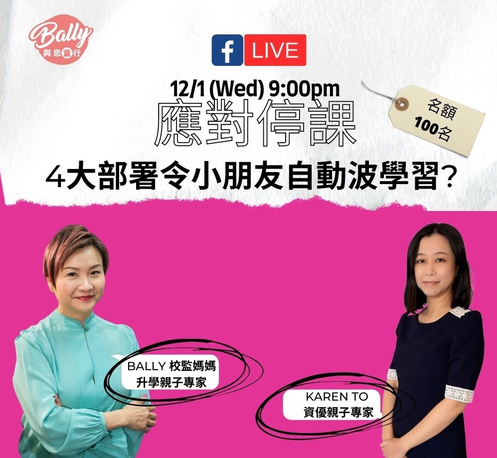 明晚,我和 Bally 會以網上清談節目的形式,跟大家分享在停止面授課堂下如何協助小朋友上網課及主動學習。現場有提問時間,即場解答家長查詢。到時見!