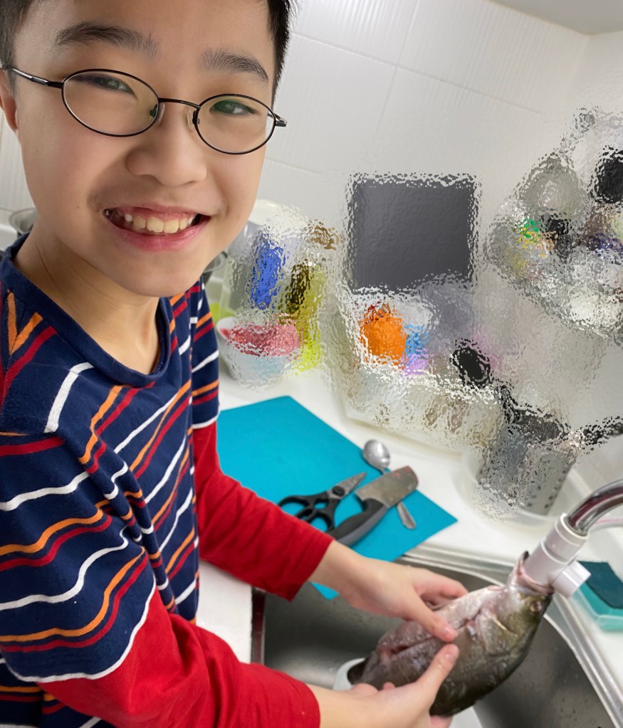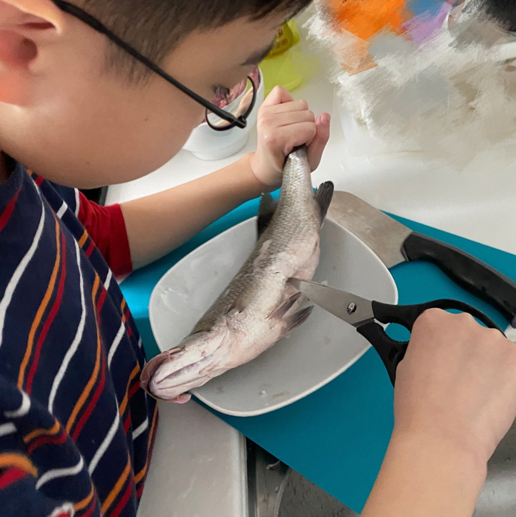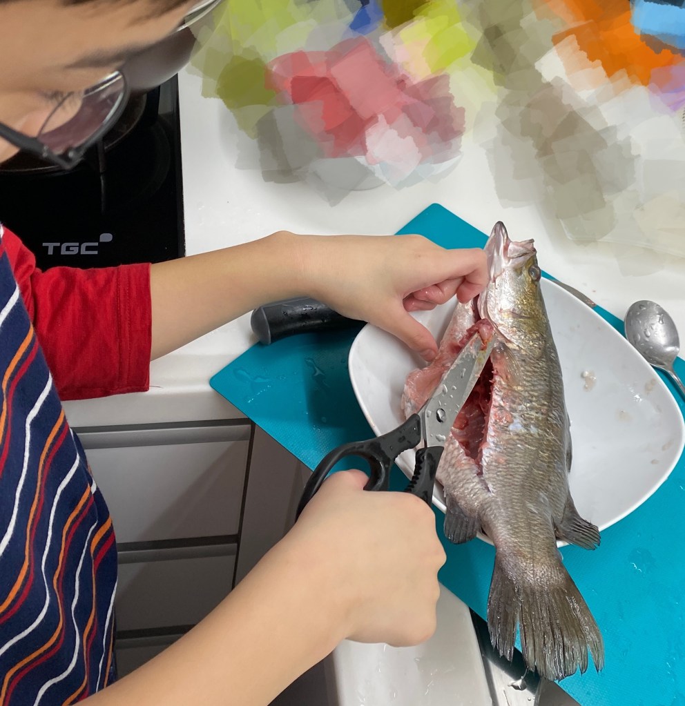 魚切開後,哥哥把裏面的內臟逐一拿出來,研究一番後,還着緊地問我每個器官是什麼。非常感謝他動起手來,最後還幫我清洗得乾乾淨淨,完全不用我動手!