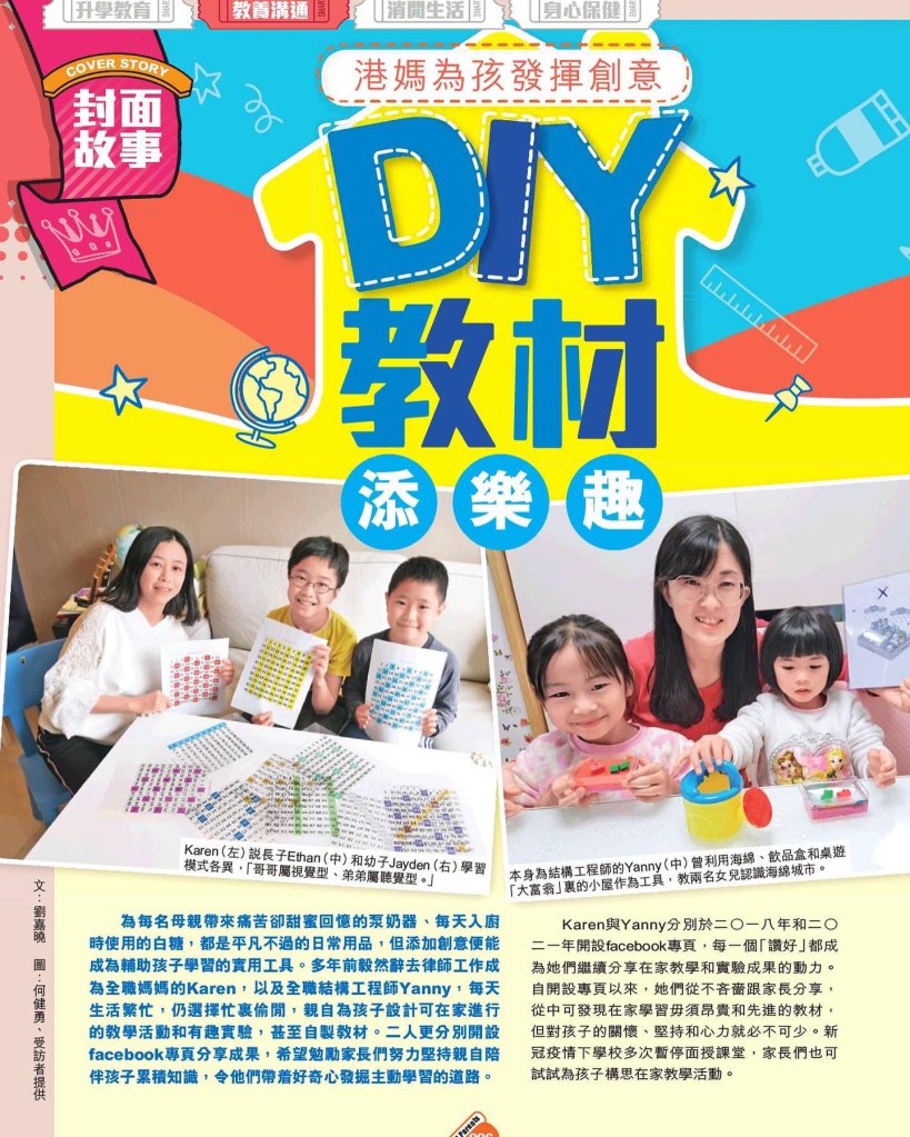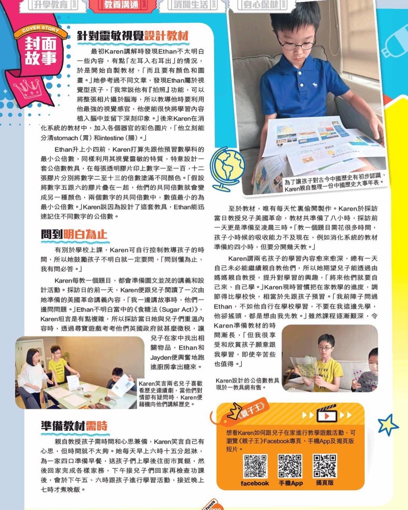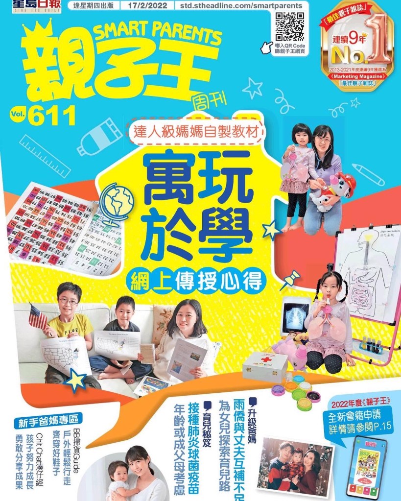 今期《親子王》(611期) 的封面故事有我們。希望藉著我們的故事,感染更多家長身體力行,利用創新靈活的教學方法,在無限的學習空間𥚃,引領孩子走得更遠,飛得更高。