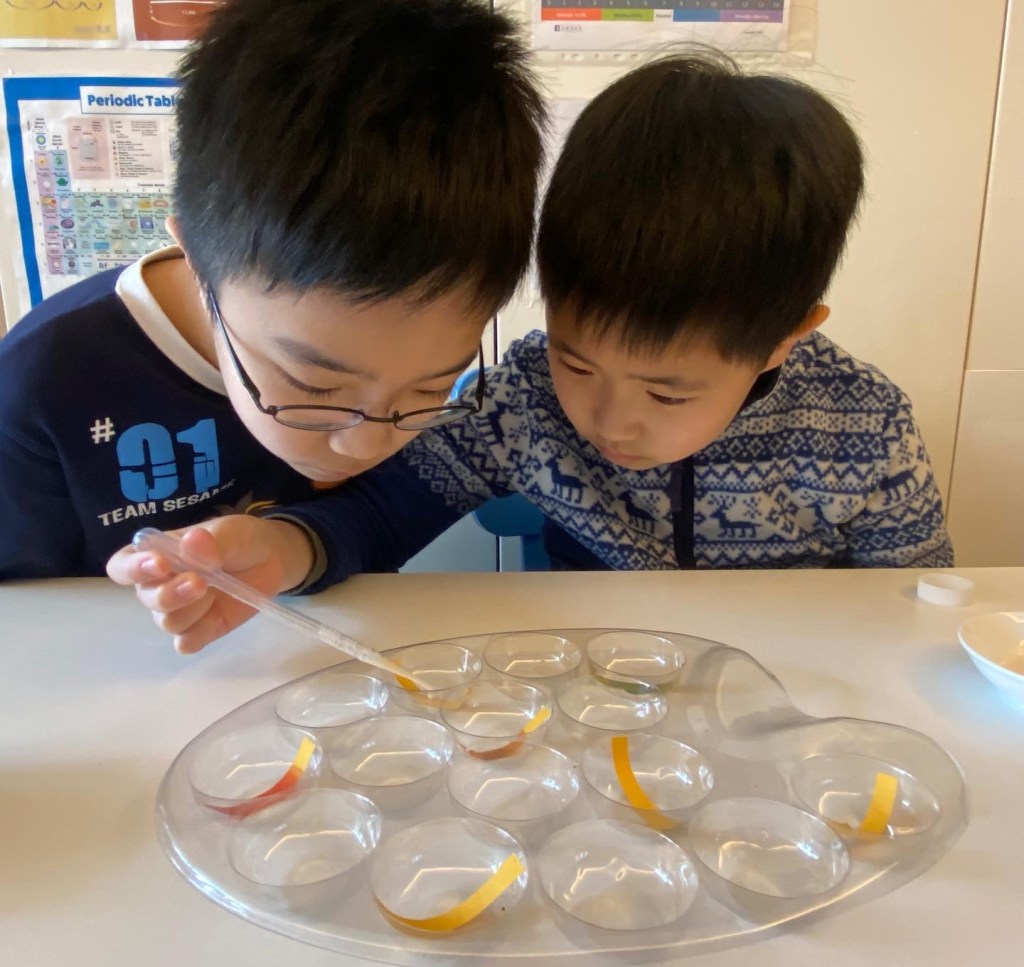 過程很簡單。先把 pH 試紙排列好,然後用滴管把溶液小心地滴在試紙上,顏色馬上就會顯示出來。緊記要對照顏色指標,把測試結果記錄下來。