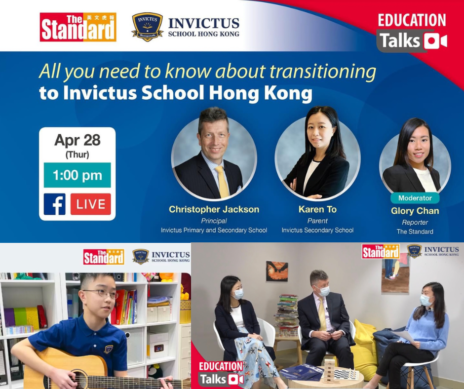 非常感謝 《The Standard 英文虎報》及 《Invictus School Hong Kong》的邀請,讓我可以在Facebook直播跟大家分享由小學至中學的適應過程。