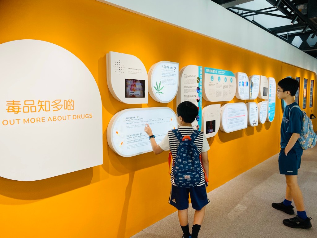 今天,我特別帶孩子參觀位於金鐘的《禁毒資訊天地》,認識毒品的禍害。《禁毒資訊天地》位於金鐘道政府合署低座頂層,由香港賽馬會慈善信託基金捐助興建,經過大規模翻新工程後,現已重新開放,並提供多項互動多媒體設施和遊戲。
