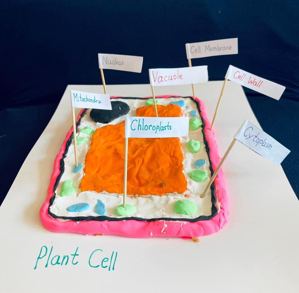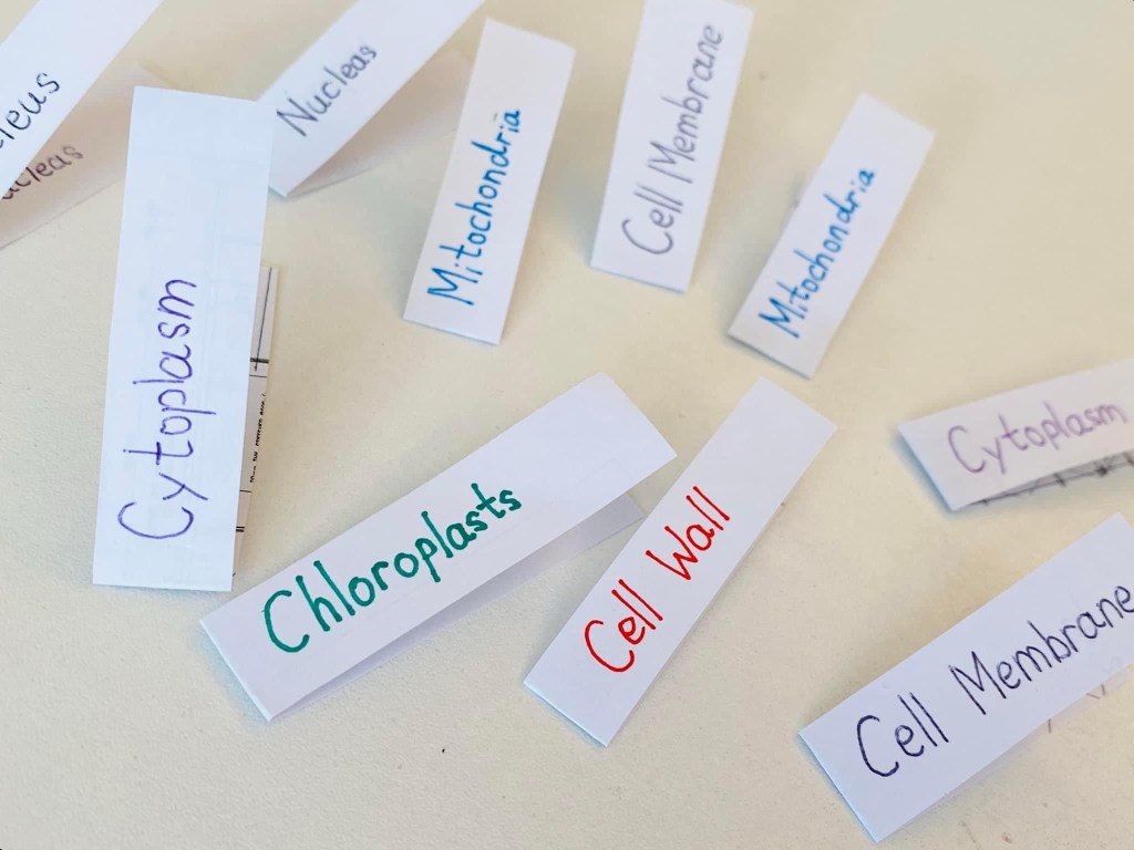 這是「人體細胞」和「植物細胞」。我請孩子用泥膠把他所認知的造岀來,加上標記。孩子善於用視覺吸收知識,加上手動、體驗,印象就更深刻了。