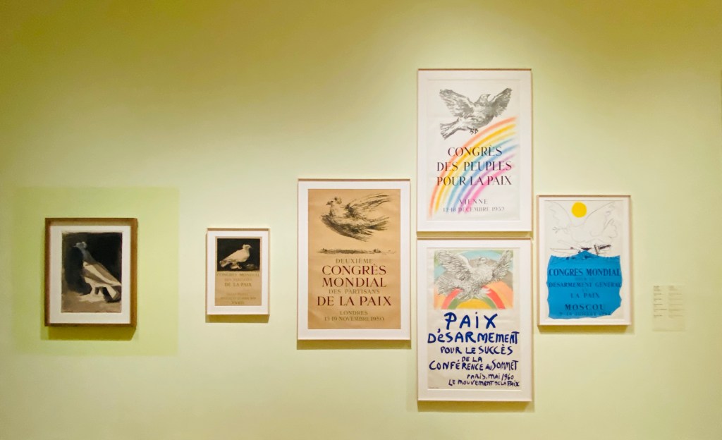 畢加索的《格爾尼卡》(1937年)是對戰爭的強烈控訴,這幅馬頭草圖,及他多幅為和平運動創作的鴿子,充分表現畢加索對戰爭的痛恨及對和平的渴求。西班牙內戰和二次大戰,打破了畢加索內心的平靜。憤恨的怒火,促使他積極參與戰後的巴黎和會,並貢獻他的鴿子作品,印製在巴黎和會的宣傳物品上。